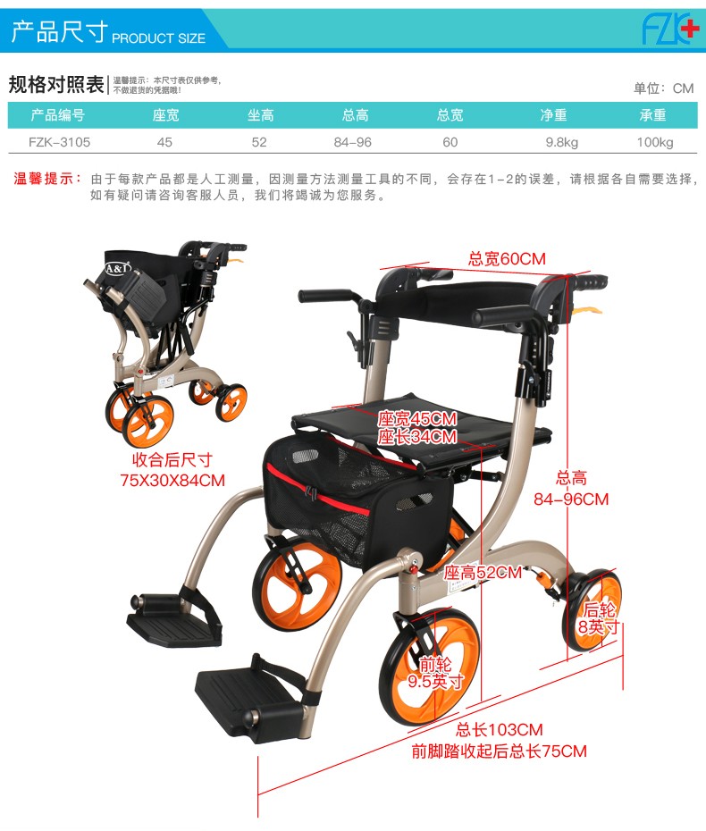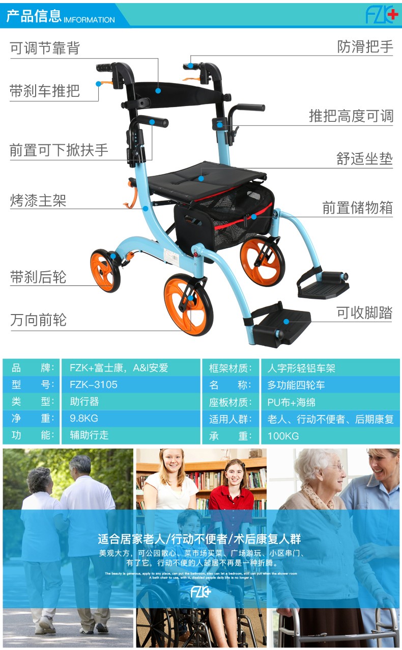 FZK-3105 ALUMINIUM MULTIFUNCTION ROLLATOR